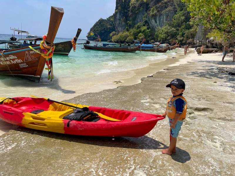 Po příjezdu trajektem z ostrova Koh Yao Noi (přes Phuket) jsme vystoupili se zavazadly a kočárkem, očekávajíc rychlou jízdu tuk-tukem do hotelu—jen abychom zjistili, že na tomto ostrovním ráji nejsou žádná auta ani tuk-tuky! Naštěstí většina hotelů posílá personál s vozíky, aby pomohl hostům s přepravou zavazadel rušnými uličkami—nebo, v našem případě, přes písčité pláže. REZERVUJTE ZDE