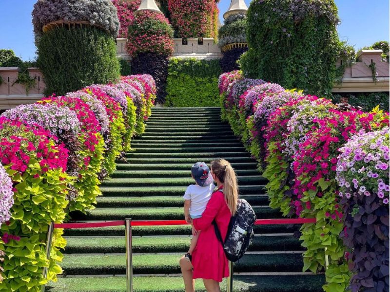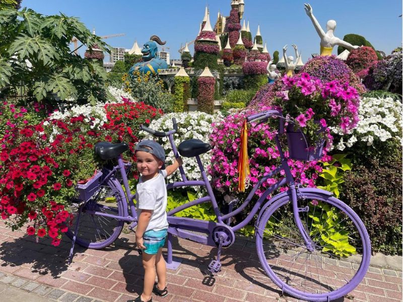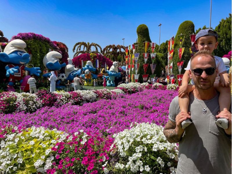 Jedna zastávka, kterou jsme rozhodně nechtěli vynechat? Miracle Garden – největší přírodní květinová zahrada na světě. A věřte mi, je to stejně kouzelné, jak to zní. Vstupné je 95 AED (26 USD) na dospělého, což rozhodně stojí za to, a bonus – děti do 3 let mají vstup zdarma!