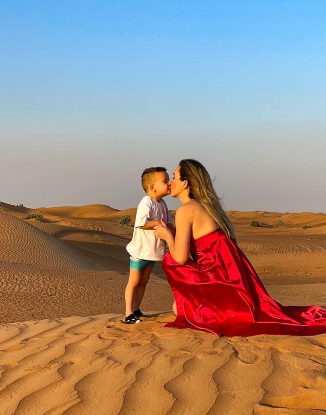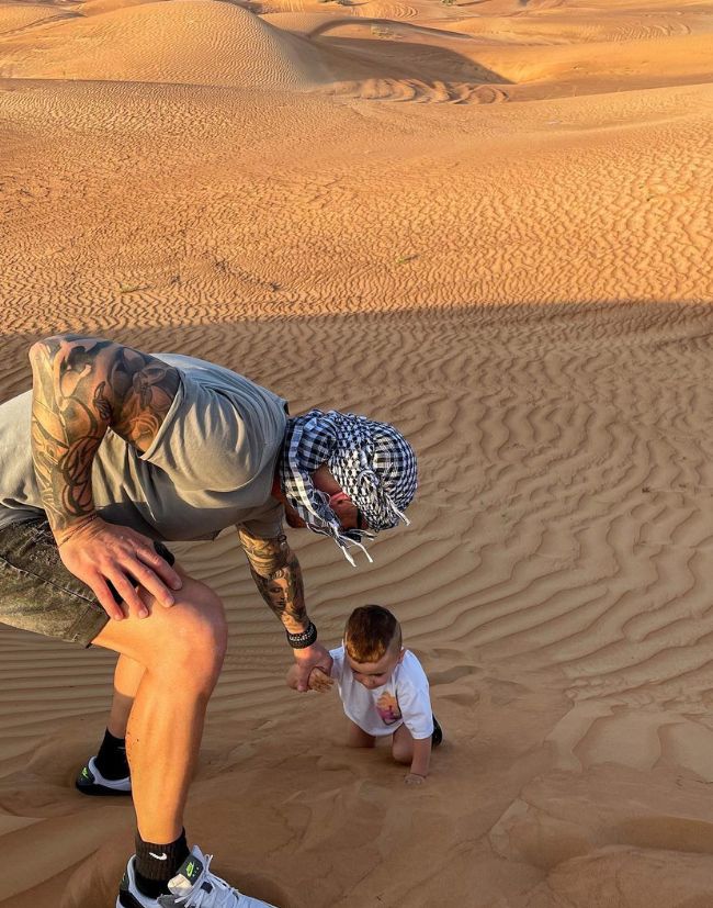 Další na programu bylo dune bashing – adrenalinová jízda přes masivní duny s profesionálním řidičem (v našem případě v postarší Toyotě). Měla jsem trochu obavy o Jaydena, hlavně kvůli absenci autosedačky, ale ten si to užíval na maximum – smál se při každém ostrém zatáčení a skoku.