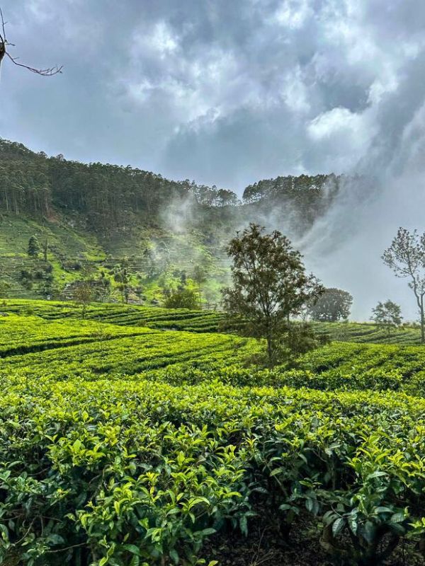 Výhled z Lipton Seat nezklamal. I když mlha zakryla jednu stranu, ta druhá nám ukázala nekonečné zelené kopce čajových plantáží. A pokud vás přepadne hlad, je tu i „restaurace“, kde vám naservírují podnos s tradičními srílanskými dobrotami. Ukázali nám, ať sníme jen to, co chceme, a nic víc nám účtovat nebudou… No a zbytek? Ten prostě odnesli zpátky a doplnili pro dalšího zákazníka. Takže… radši nad tím moc nepřemýšlet.