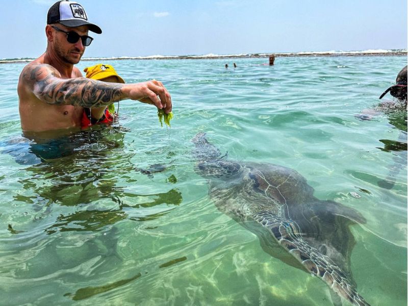 Mělké vody, přírodní útesová bariéra a průzračné vlny jsou ideální pro malé dobrodruhy. Doporučuji přijít brzy ráno, kdy je odliv a klidná voda. A víte co? Třeba si váš ninja najde želvího kamaráda, protože těch je tam vždycky pár kolem ?. Taky želvy můžete krmit mořskými řasami, které dostanete od místních hlídačů.