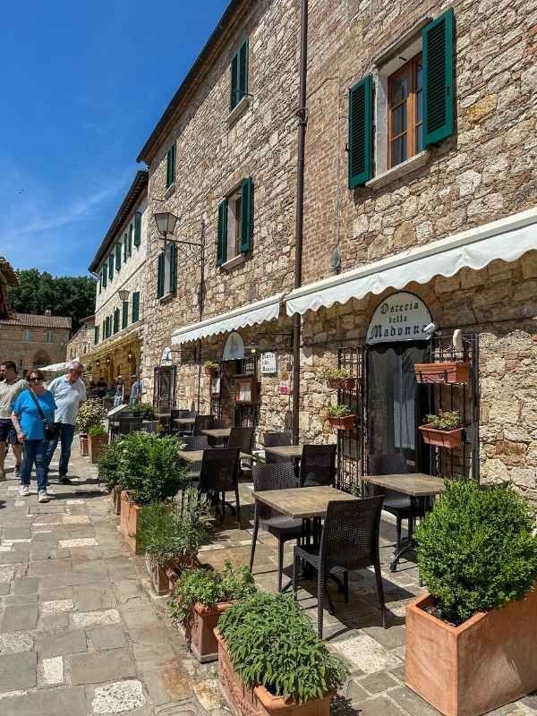 Kousek autem odtud najdete ještě jedno silné místo z filmu – alej lemovanou cypřiši a kamennou bránu, kde přijíždějí římští vojáci, aby zabili Maximovu rodinu. Leží přímo u silnice SP146 kousek za Pienzou. Je tam malé parkoviště a i když je alej na soukromém pozemku, z cesty je dokonale vidět. Cypřiše stojí vysoké a klidné – stejně jako ve filmu. Jako strážci osudu.