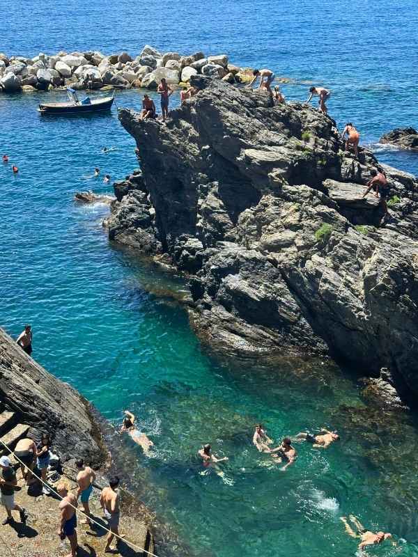 Všech pět se dá objet vlakem během jednoho dne, nebo si některé úseky projít pěšky po Sentiero Azzurro (Modré stezce). Ale vzhledem k letnímu vedru a malému dítěti jsme zůstali u vlaku – a nelitovali jsme!